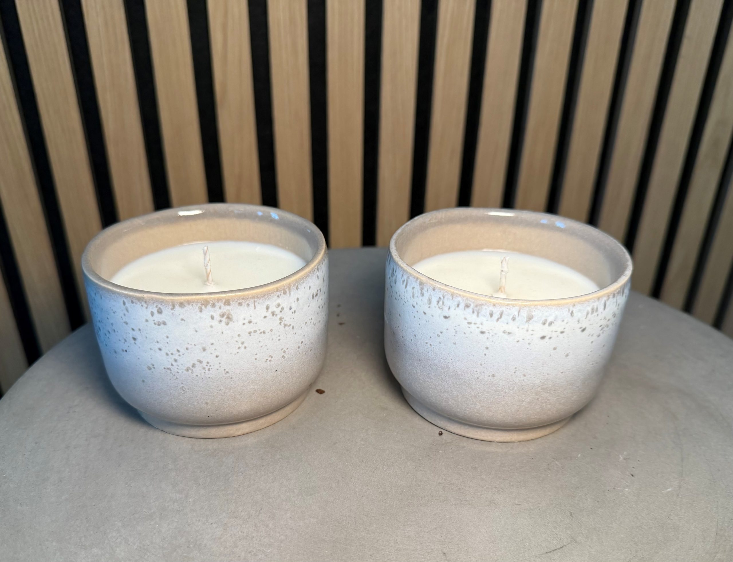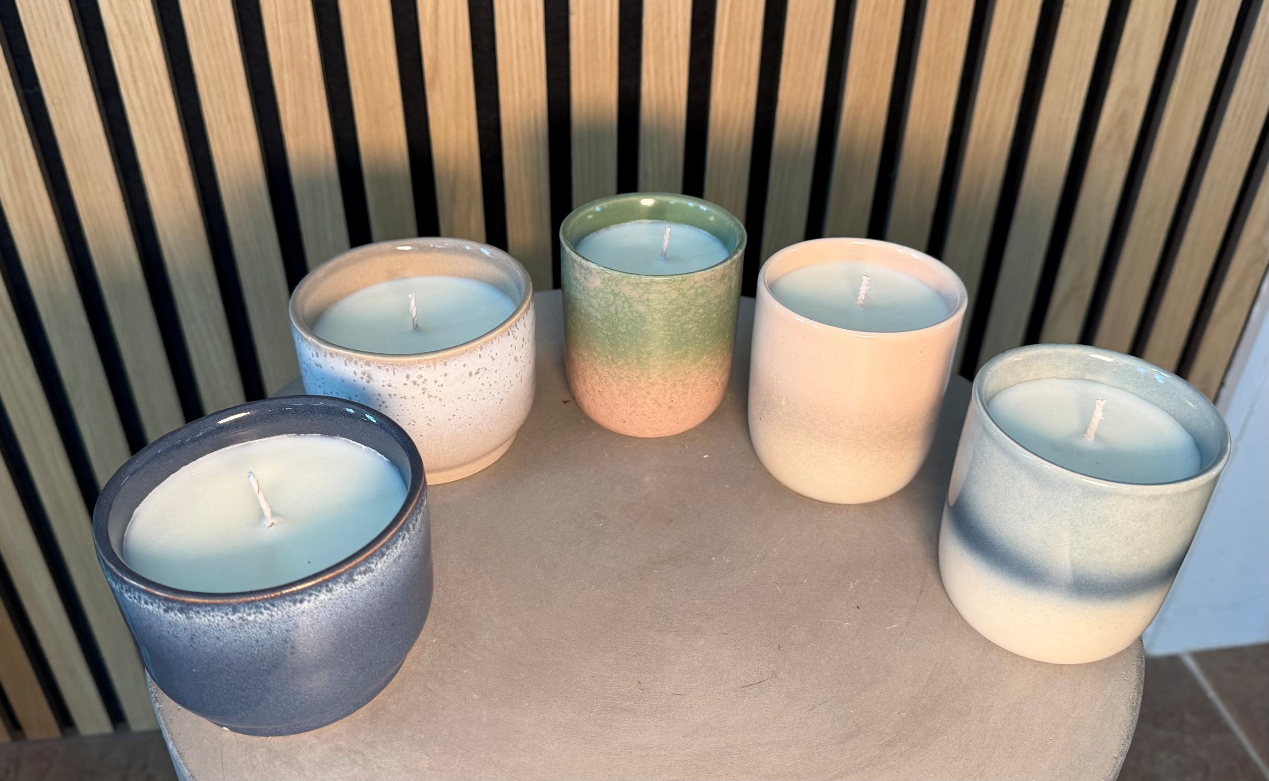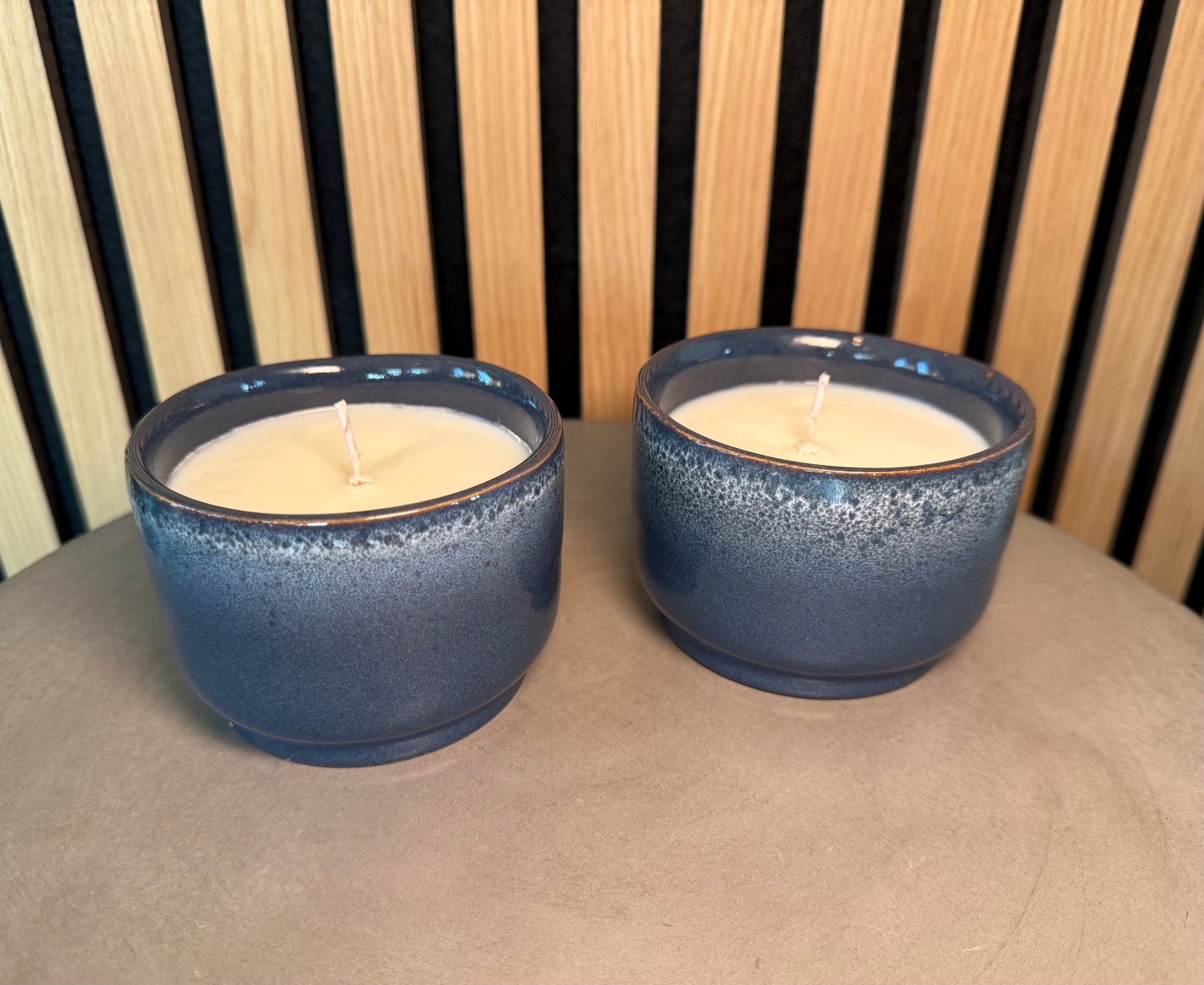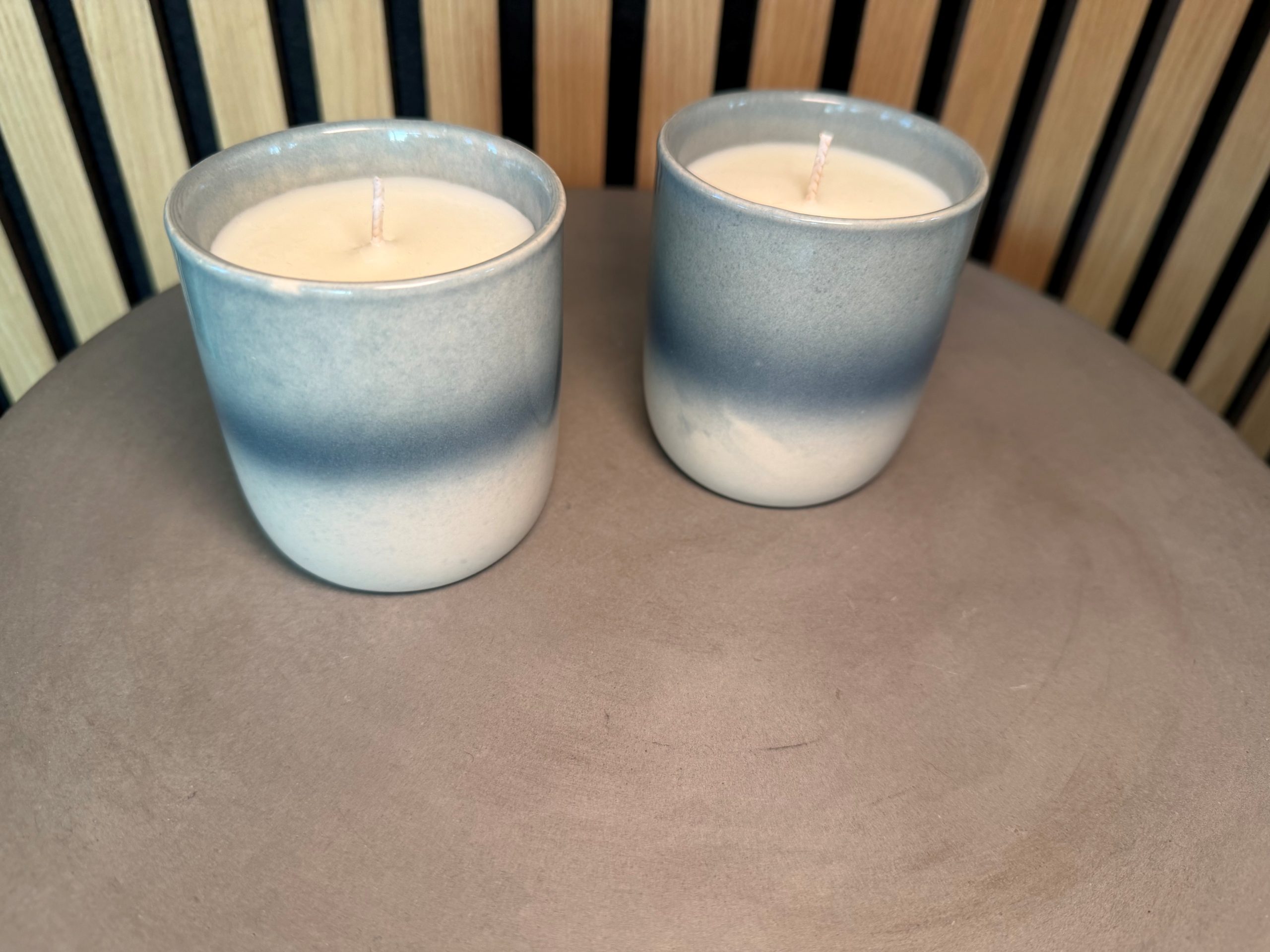 Udvendige mål på lys grå og Mørk blå D9xH6,5 cm (Tip: anvend Golden wax 464 eller R45+ med væge ECO 10.)