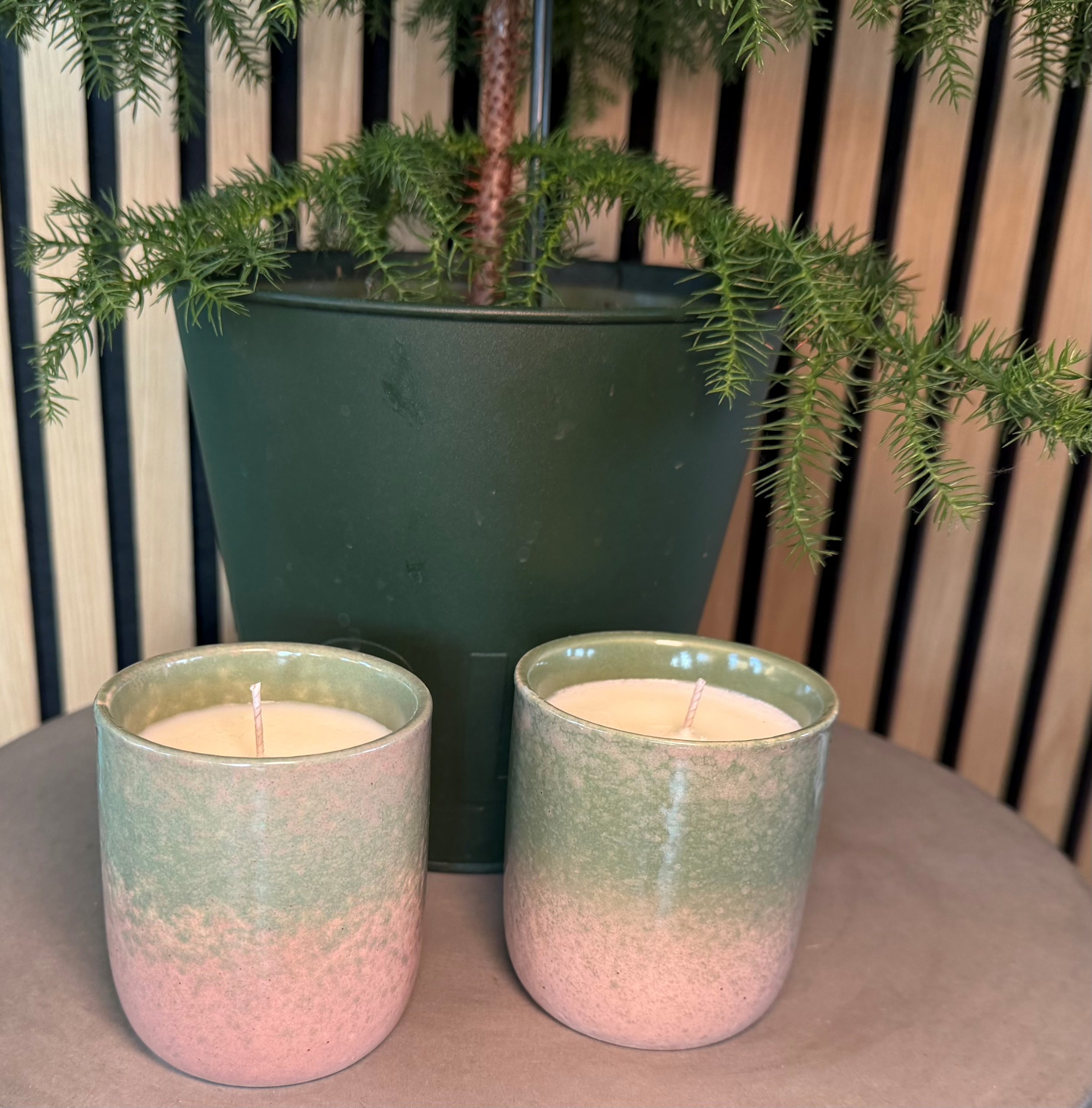 Udvendige mål på rosa/grøn, rosa/beige og blå/creme D7xH8 cm (Tip: anvend Golden Wax 464 eller R45+ med væge ECO 4.)